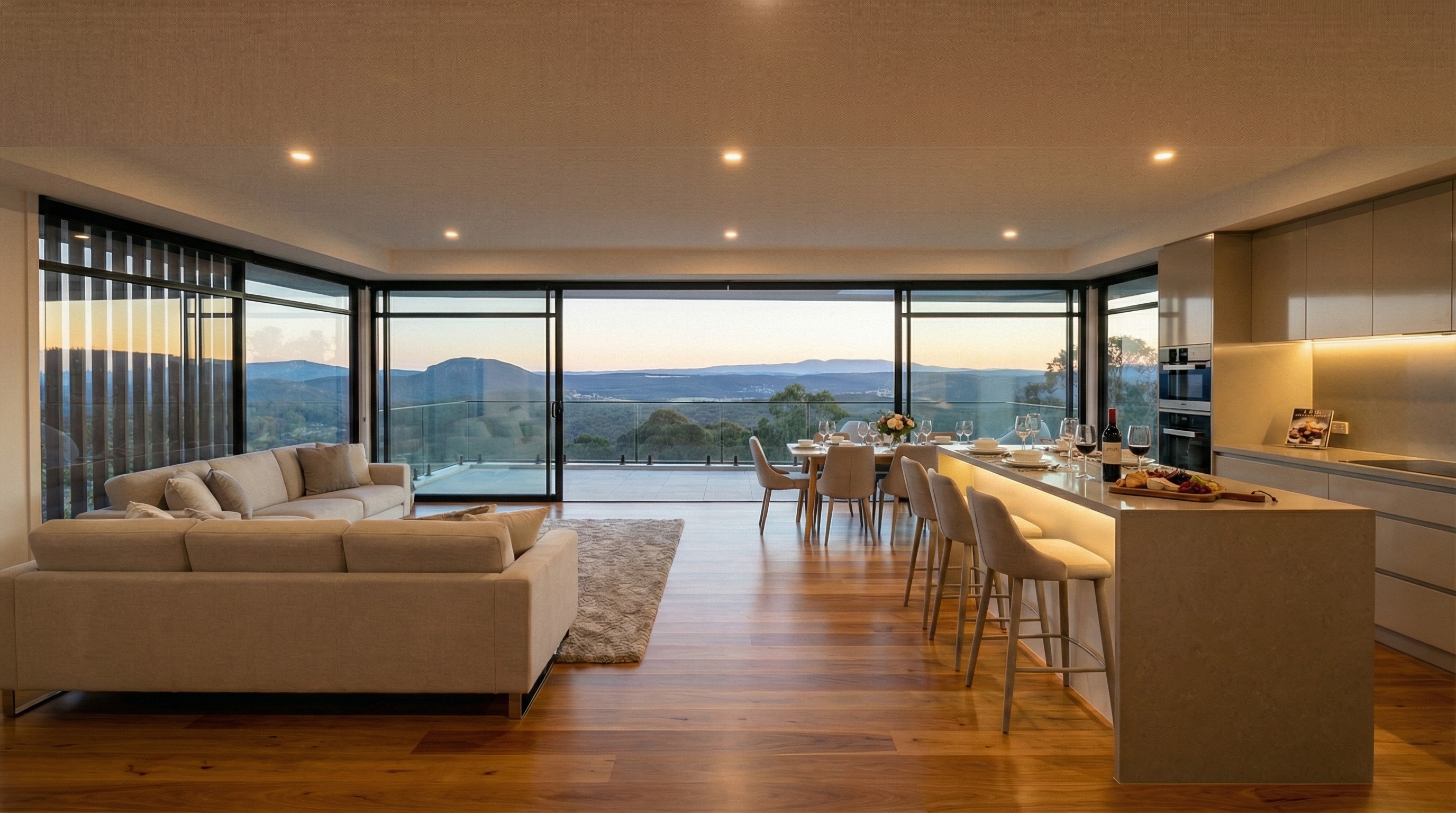 Perched in the heart of Wentworth Falls, this high-end tastefully designed residence is crafted to capture sweeping panoramic views of Mount Wilson and Mount Irvine. The elegant, minimalist design pairs simple, rustic materials with refined detailing, allowing the breathtaking valley backdrop to take a center stage. Whether from the rooftop deck or the graceful verandah, it's a place to savour sunrise and sunset in complete serenity.